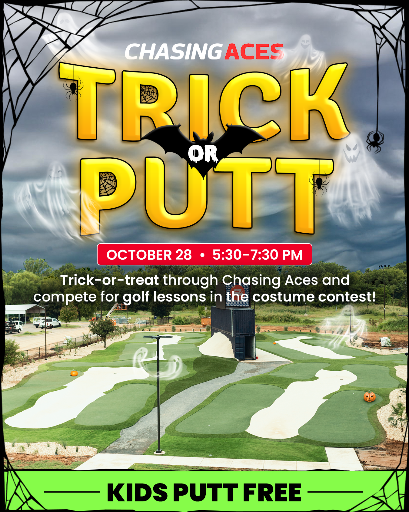 Trick or treat through Chasing Aces and enjoy a costume contest with prizes to win! Book you bay + kids put for free!